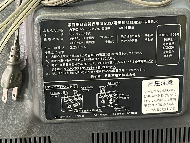 NEC CV-141B/14インチ/電源入ります/砂の嵐確認