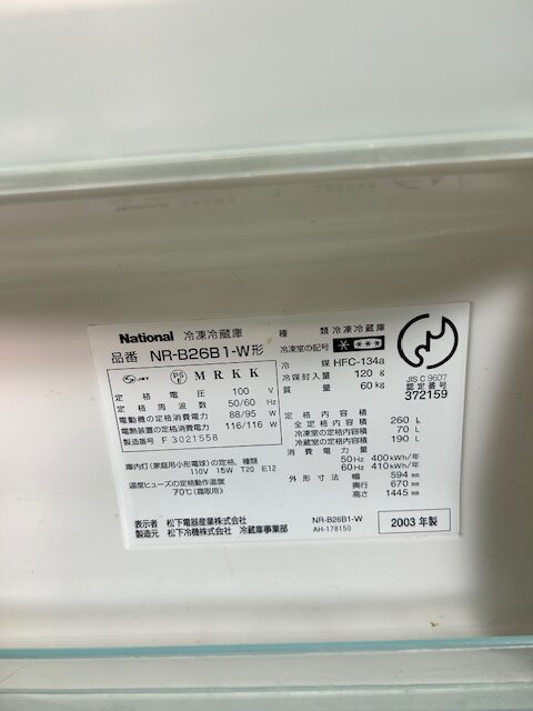 ナショナル NR-B26B1/容量:260L